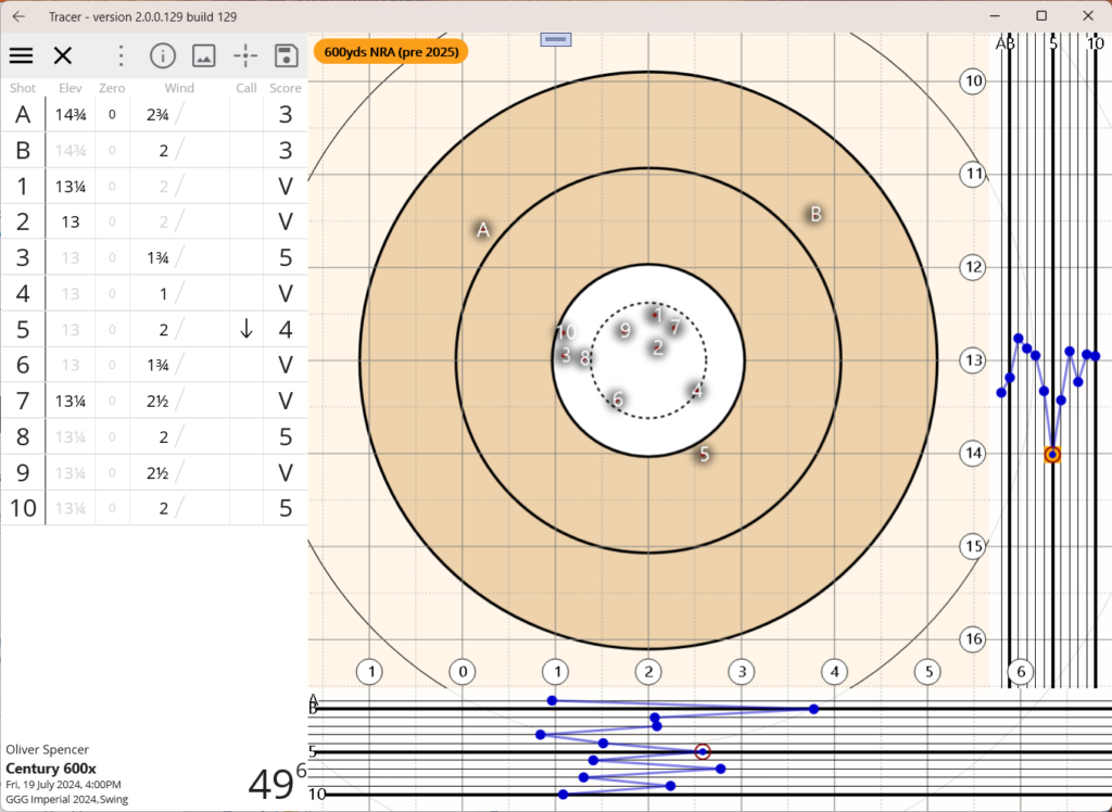 - Plot the shots and shoot data, including shot location, elevation, windage, calls etc.