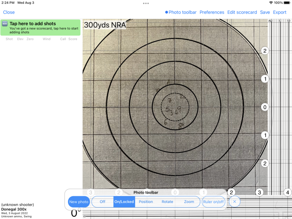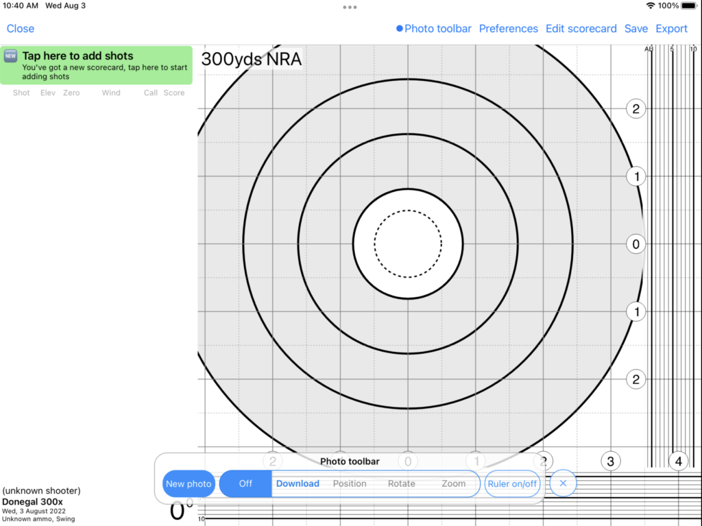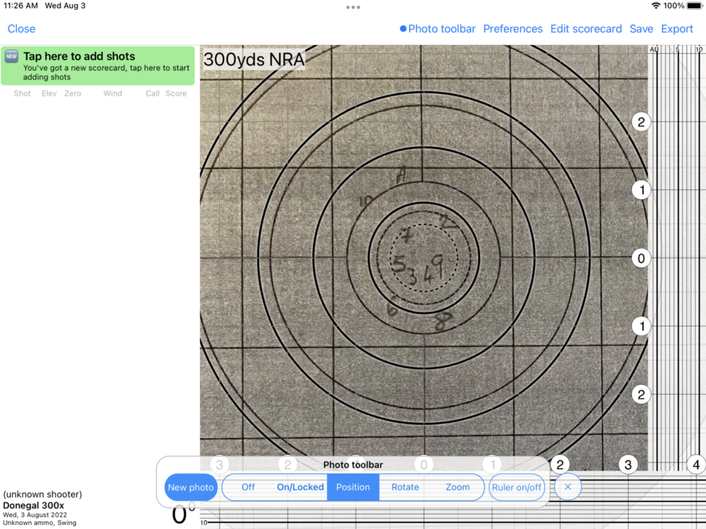 TIP: One of the benefits of using Tracer is that it will keep both the photograph of your actual paper scorecard, and the digital version, for later recall. Rather than taking a photograph just of the scorecard diagram, it may be preferred to take a photograph of the entire scorecard including wind and elevation data in case you’d like to view the original scorecard in future.